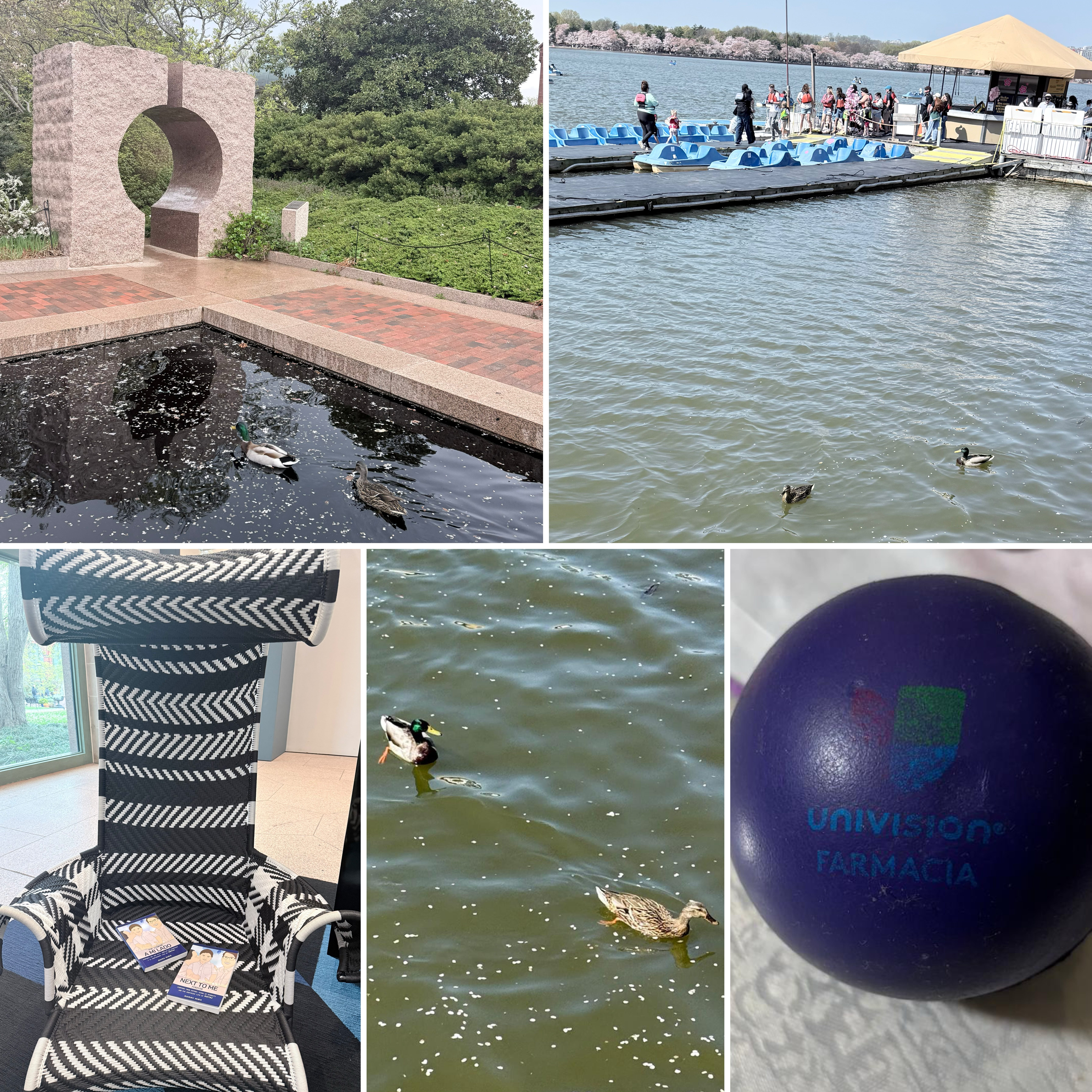 Al día siguiente, al llegar al Tidal Basin para ver los cerezos, lo primero que vimos fue a los mismos dos patos. Ahí estaban otra vez. Uno con su cabecita verde y el otro marroncito, siempre juntos, como esperándonos.